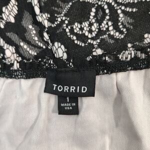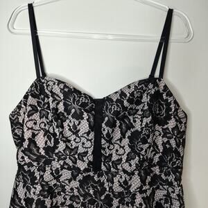 Torrid Corset Style Top Women's vanity size 1 or 14/16 (1X) Black & Light Pink. Black floral lace over very light pink fabric. Loose fitting corset style with no support. Bralette has an extra layer of lining. Adjustable straps. Preowned excellent condition. From a non-smoking home.