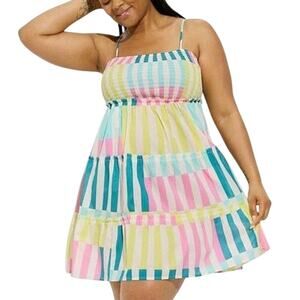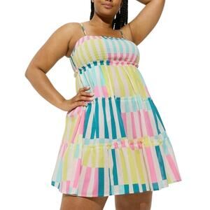 Torrid Cotton Voile Trapeze Colorful Striped Cover Up Mini Dress Size 2X