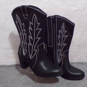 Torrid Cowgirl Boots Black w/White Detail New Size 8ww