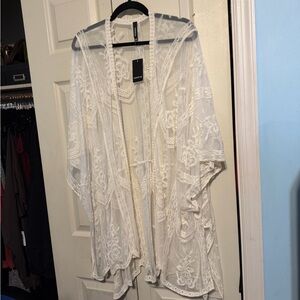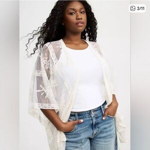 Chic cream mesh ruana with delicate embroidery. Ideal for layering. Brand new with tags and never used. One size fits all
