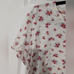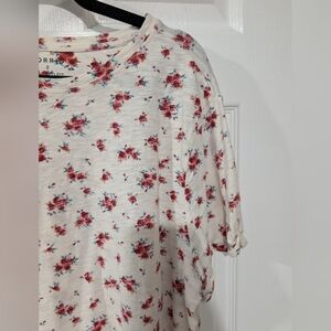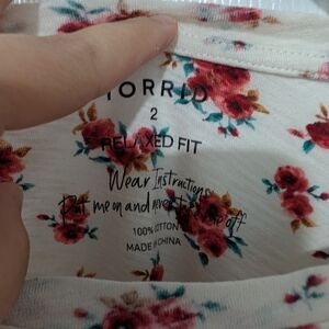 Torrid Cream Floral Relaxed Fit Heritage Slub Roll Sleeve Tee in Size 2
