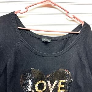 Torrid Crewneck Cotton Sweater with Heart Sequence LOVE Graphic on Front Size 2