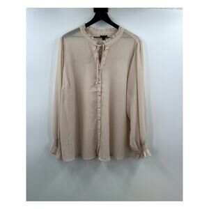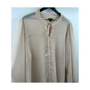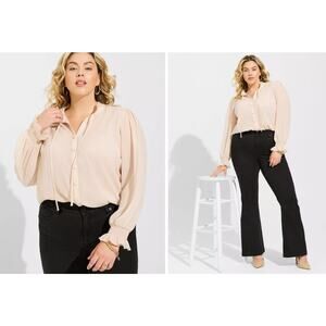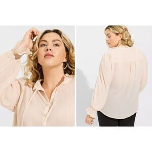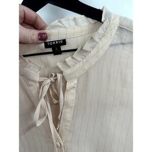 Torrid Crinkle Chiffon Button Up Mock Neck Blouse Cream and Gold Size 3