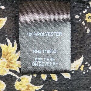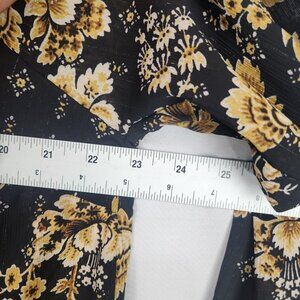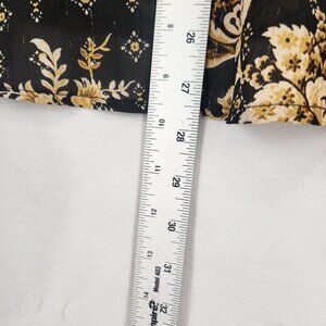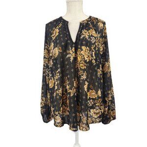 This shirt is in excellent condition. Very clean, well cared for. Black with gold floral print and gold threads running throughout. Very shear. Long sleeves with elastic at wrists. Flowy and lightweight. Torrid size 00 is equal to size 10 or M/L.