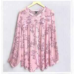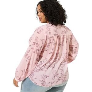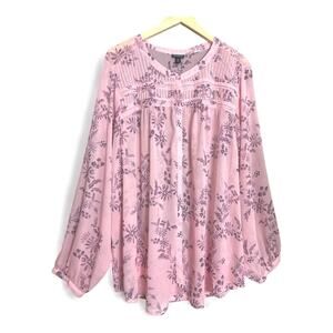 Torrid Crinkle Chiffon Pintuck Long Sleeve Pink Floral Blouse - Size 5X