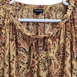 Torrid Crinkle Chiffon Raglan Tie Front Blouse In Medallion Sz 3X