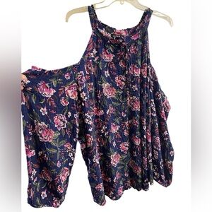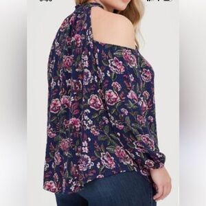Torrid Crinkle Gauze Cold Shoulder Button Front Top Navy Blue 3X