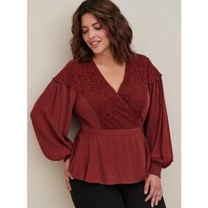 Torrid Crinkle Gauze Lace Inset Surplice Top Blouse Women’s Sz 1 1X/14-16 Red