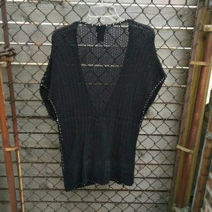 Torrid Crochet Beaded Black Knit Sweater Blouse