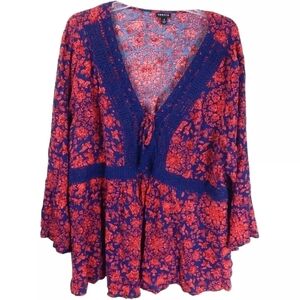 Torrid Crochet Trim Babydoll Gauze Floral Top