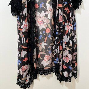 Torrid Crocheted Lace Trimmed Floral Kimono Duster [size 1/2]