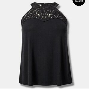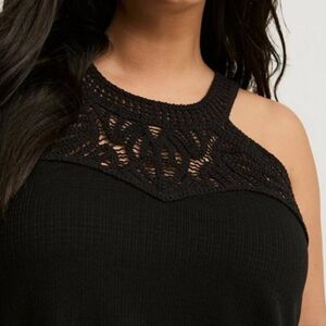 Black crochet neck swing tank. NWT. Never worn or washed. Bought spring 2025. Torrid size 1 (does not include blue top).