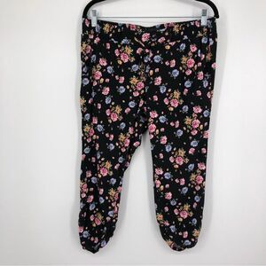 Torrid Crop Classic Fit Jogger Stretch Challis Mid-Rise Pant in black floral. Size womens Torri 00 = M/L.