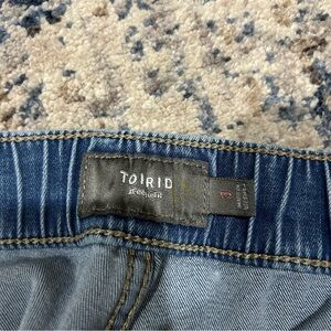 Torrid Crop Pull-On Mid-Rise Super Soft Boyfriend Jeans. Has some wear around the crotch. As shown in photos above. In otherwise great preowned condition. Feel free to make a reasonable offer through the offer button!