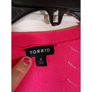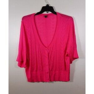 Torrid Cropped Heart Short Sleeve Stretch Button Cardigan Shrug Hot Pink Size 4X