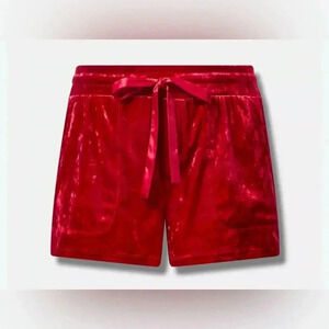 Torrid Crushed Velour Sleep Short in Jasper Red with Drawstring Waist and Pockets; Torrid size 1