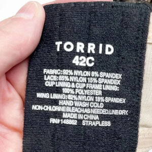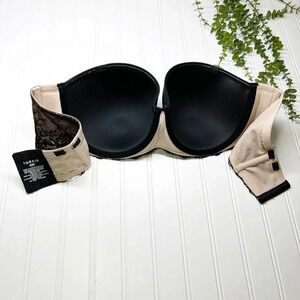 Torrid Curve Black & Cream Lace Trim Strapless Bra Women's Plus Size 42C