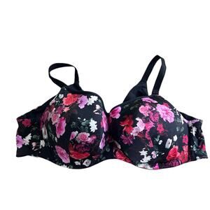 Torrid Curve Black Floral Bra Sz 48B Underwire Support Full Coverage Curvy