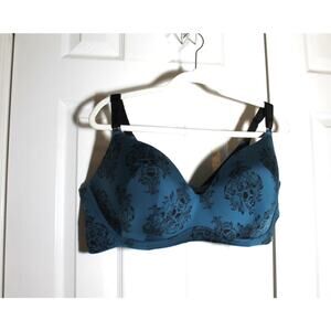 Torrid Curve Blue Skull Damask Dream Wire Free Push Up Bra sz 46DD