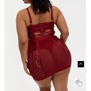 Torrid Curve Dark Red Mesh & Lace Cutout Cage Underwire Chemise 2X Women’s.