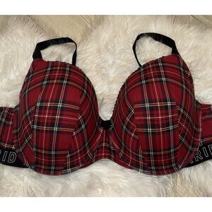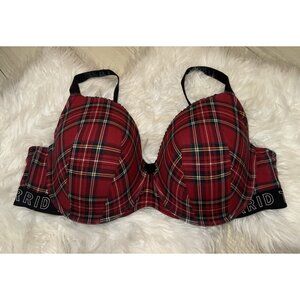 Torrid Curve Logo Red Plaid Cotton Lightly Lined T-Shirt Bra UW Womens 44D