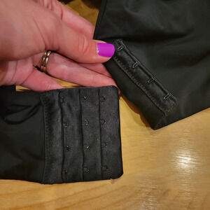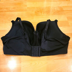 Great everyday day classic black bra. Wide smooth band. Supportive straps. Underwire. No removeable padding. Padding is not extreme. Strong adjustable clasps. Lace detail between cups. Size 46D