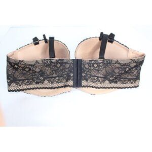 Torrid Curve Push Up Strapless Size 44D Black Beige Lace Wired Padded Bra NWT