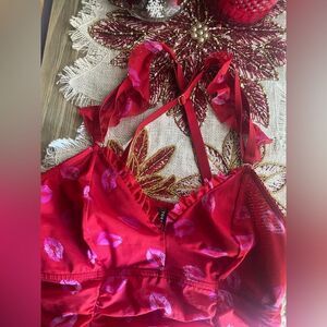 Torrid Curve Ruched Mesh Ruffle Mini Dress Size L Red Líps Sleeveless