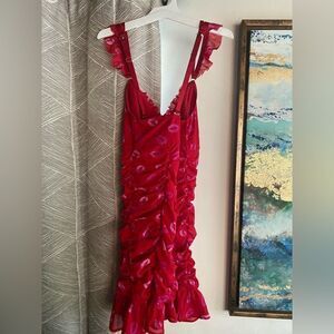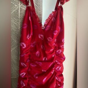 red dress with pink lip print