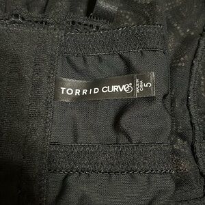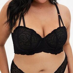 Torrid Curve Scroll Lace Sheer Lined Underwire Longline Bra Rich Black 5X / 28. With a longline silhouette and lacy design, this bralette is sure to provide a sexy yet sophisticated look. Underwire cup. Adjustable straps. Sheer mesh lining. Boning on the side for structure. Back hook and eye closure. Strappy detail. Nylon/spandex Great pre-owned condition. No stains/flaws. Smoke/pet free home. Offers welcome. Bundle & save. Ship same/next day. Packaged w/ care.