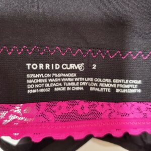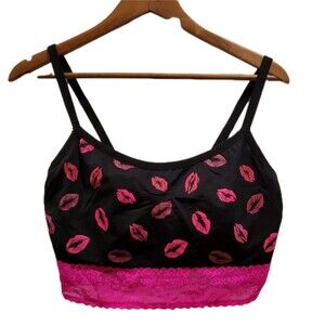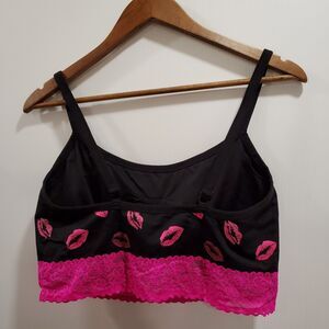 Torrid Curve Size 2Padded Bralette Black Hot Pink Lace Lips Design Kiss Lipstick