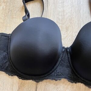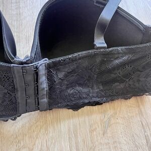 Torrid Curve Solid Black Lace Trim Bra 46D Bow Underwire Think Band