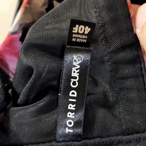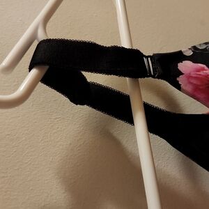 Black floral bra, lightly lined with full coverage cups. Adjustable straps. Five hook and eye closure in the back. Wide sides, mesh lined for breathability and smoothing sides under and around arms. Excellent condition!