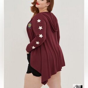 Torrid DC Comics Wonder Woman Drape Hooded Cardigan - Burgundy size 6X Plus