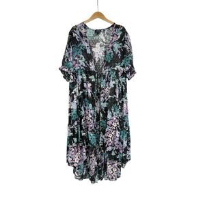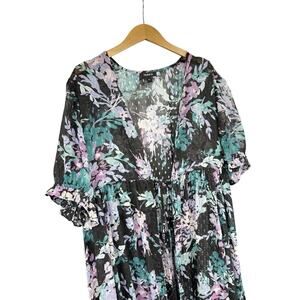 Torrid Dark Purple Floral Sheer Fairy Tie Front Duster Coverup Womens 2/2XL