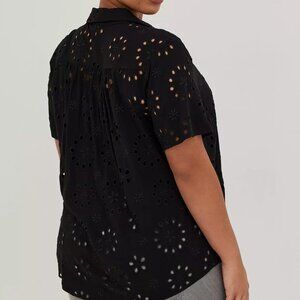 Torrid Deep Black Eyelet Button-Up Shirt in Size 1 (14/16)