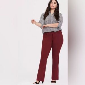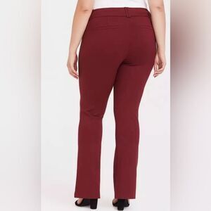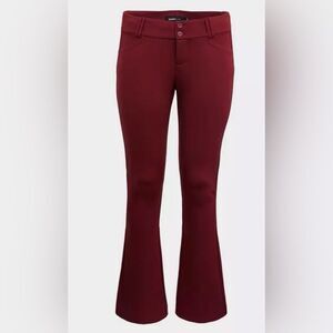 Torrid Deep Red Studio Signature Premium Ponte Stretch Trouser NWT!!! Double button and zip closure Functional front pockets Faux back pockets Form fitting through thigh and slight flare that hits below the ankle for a lengthening look Premium Ponte fabric—4% spandex for good stretch High rise at roughly 12.5 inches Inseam is roughly 31.5 inches Color: deep red Size: 24R #work #office #businesscasual #funky #fall