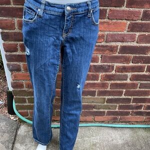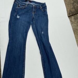 Chic denim jeans featuring goth accents. Perfect for casual wear.