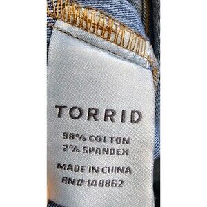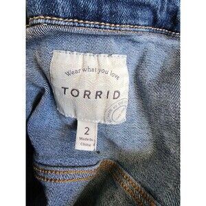 Elevate your wardrobe with the effortlessly chic Torrid denim jacket, perfectly tailored for a plus-size fit in a size 2/2X. Crafted from a comfortable cotton blend, this jacket features a classic blue hue that pairs seamlessly with any ensemble. Its versatile design boasts a button-front closure and practical pockets, making it an ideal choice for casual outings, travel, or as a stylish layer for workwear. The jacket's long sleeves, short length, and solid pattern epitomize a blend of 90s bohemian flair and timeless classic style. Whether you're dressing up or down, the jacket's durable denim fabric ensures it's a machine-washable staple for every season, ready to complement your unique sense of fashion with its iconic logo and button accents. CLOTHING AND FABRIC ITEMS: All clothing and fabric items have been steam cleaned and/or washed.