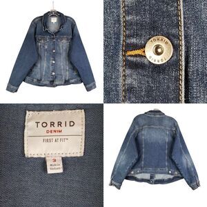 Torrid Denim Jacket Womens 3 3X Trucker Stretch Button Front Casual Blue