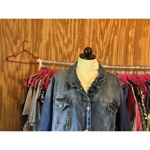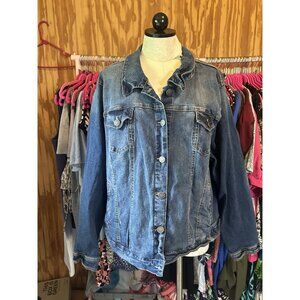 This listing is for Torrid Denim Stretch Jacket In Dark Wash Size 4 (4X) Pockets Full Button Down