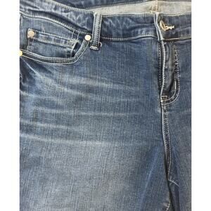 Medium blue wash with slight fading, classic five-pocket design, and stretch cotton blend for a comfortable fit. Great casual summer piece, perfect with tees, tanks, or flowy tops.