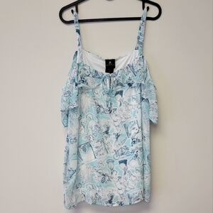 Torrid Disney Cinderella Sketches Flutter Cold Shoulder Top Blue 2X