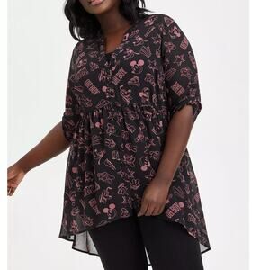 Torrid Disney Mickey Mouse & Friends Lexie Chiffon Hi-Lo Babydoll Tunic Top 3X