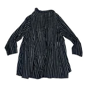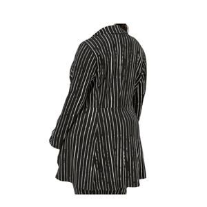 This Disney blazer features a striking black and white pinstripe design, offering a sophisticated and structured silhouette. The long-line style with a prominent lapel collar adds a touch of elegance, making it a versatile addition to any wardrobe.
