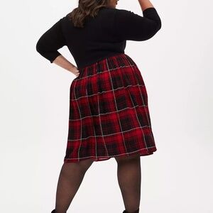 Torrid Dress 0X LG - Skater Black Knit Red Plaid Pockets Plus Size Holiday X-Mas