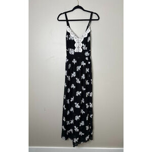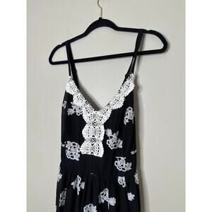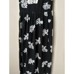 Torrid Dress 1X Black Maxi Chiffon Floral Embroidery Smock Retro Rockabilly