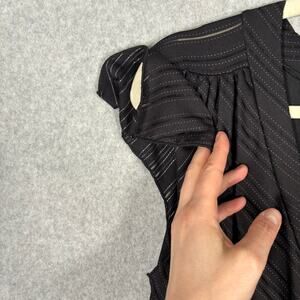 Y2K Torrid Dress 1X Midi Wrap Stretch Secretary Whimsygoth Career Church Fairy Polka Dot Striped Black White Short Sleeve V Neck Corp Career Work Office Business Church 90s Ruffle Flutter Slit Stretch Lined Classic Casual Retro 50s Comfort Ruched Pleated
