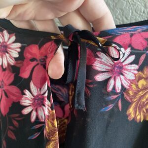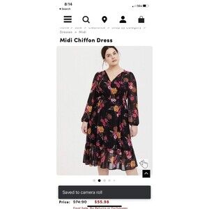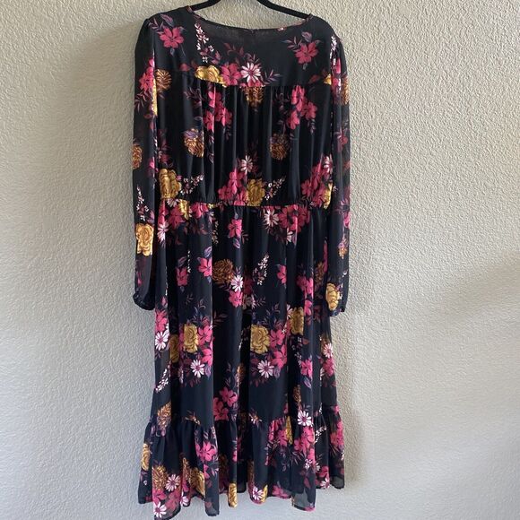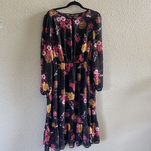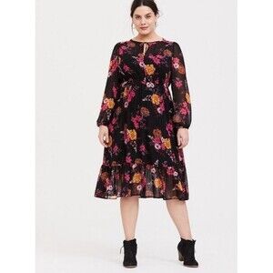 Torrid Dress 2X Black Red Long Sleeve Midi Chiffon Floral Boho Flowy