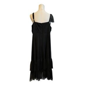 Gorgeous asymmetrical ruffel details , this dress will have you feeling elegant and edgy